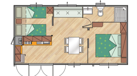 Nuove casette mobili di dimensione 7,50 m x 4,00 m perfette per le famiglie.